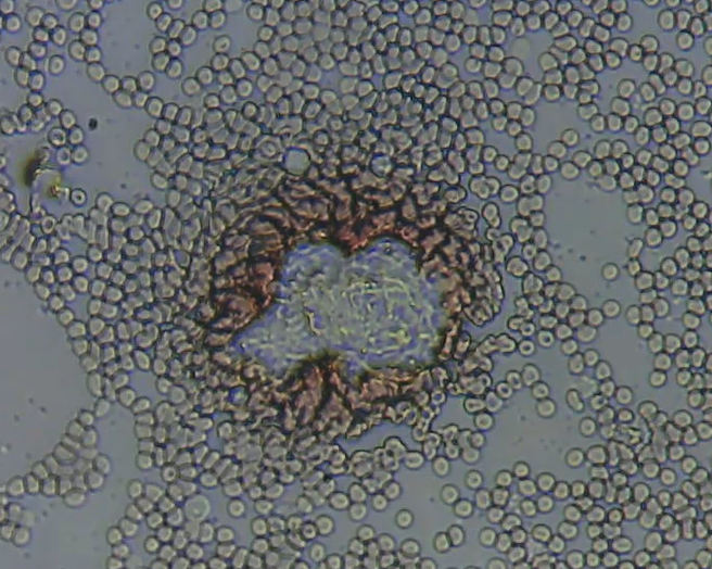 In reality, the molecules in the blood, in all their detail, are not visible under an optical microscope. Only plasma and clusters of molecules, such as cholesterol, more or less dissolved in plasma, are visible. The concentrated molecules or clusters seen in the blood can be foreign bodies.